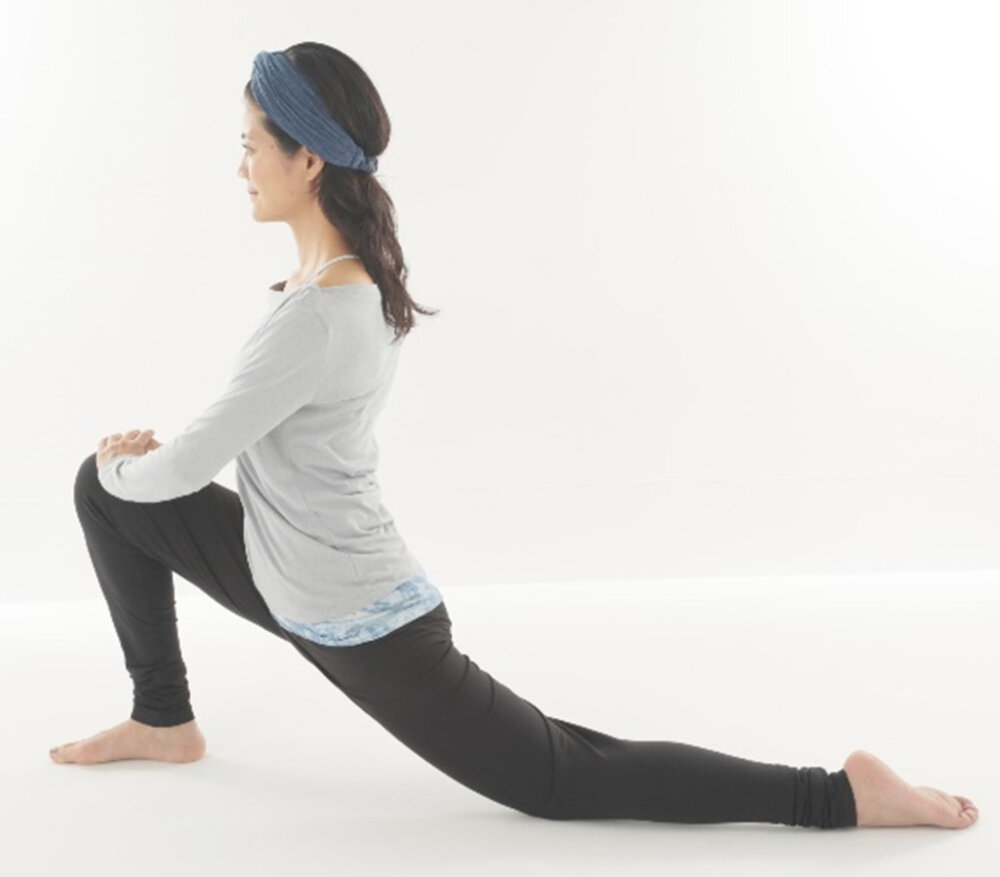 頭の後ろで手を組むのは胸郭が持ち上がり、すこし大腰筋が伸ばされるのでそうしています。