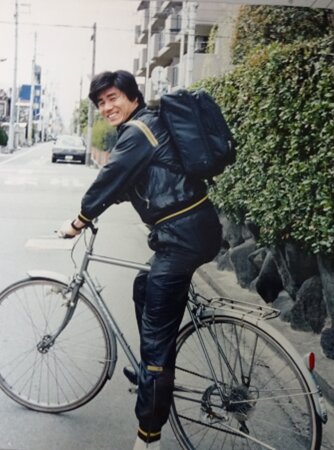 下の写真は、平成元年、月曜教室の授業が終わって()、次の患者さん宅へ往診治療に向かう瞬間、写真を撮ってくれたもの。 (当時は整体治療も教室と並行しておこなっていた)