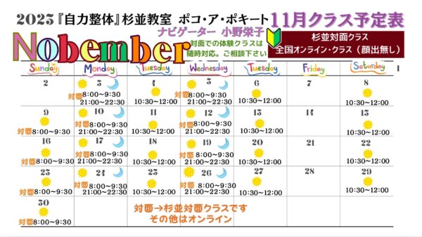 ・クラスの開催の有無についてはスケジュール表に随時更新しておりますので確認お願いいたします。